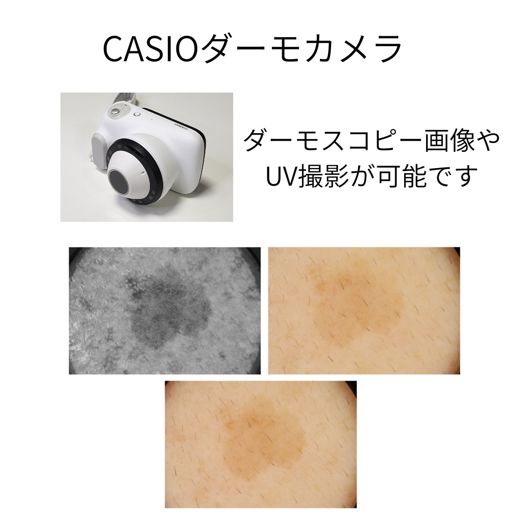 ダーモスコピーは、特殊なレンズを通して皮膚を拡大して観察する診察器具です。シミの色調・構造・境界の特徴を詳細に確認することで、