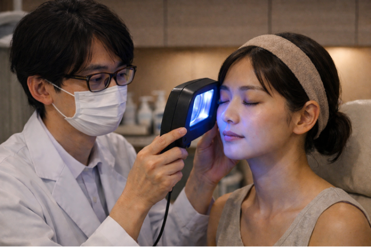 また、Wood灯を用いることで、現在は目立っていなくても、将来的に表に出てくる可能性のある色素の偏り(いわゆる「隠れシミ」)が確認できる場合もあります。